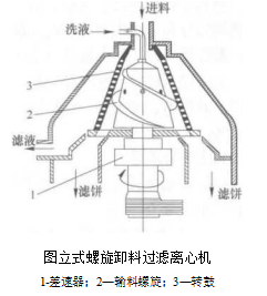 螺旋卸料過濾離心機(jī)的主體結(jié)構(gòu)與螺旋卸料沉降離心機(jī)基本相同不同之處是轉(zhuǎn)鼓稍短一些轉(zhuǎn)鼓壁開有小孔內(nèi)襯篩網(wǎng)結(jié)構(gòu)形式分立式和臥式兩種.
