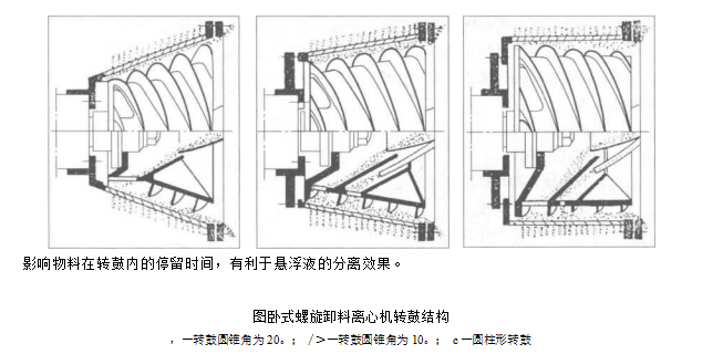 臥式螺旋卸料過濾離心機(jī)的工作原理與立式相同其轉(zhuǎn)鼓結(jié)構(gòu)分為3種類型如各種類型的轉(zhuǎn)鼓都有相應(yīng)的適用范圍.