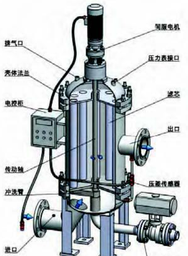 自潔式過(guò)濾器為多功能系統(tǒng)部件,具有壓差自動(dòng)報(bào)警、氣水分離以及過(guò)濾功能。過(guò)濾器自潔能力強(qiáng),不用經(jīng)常清洗過(guò)濾網(wǎng)。對(duì)水系統(tǒng)中的氧化鐵皮、老垢、污泥和空氣等雜質(zhì)進(jìn)行有效地排除,以保證水質(zhì)的清潔